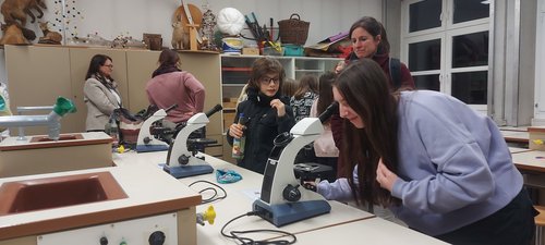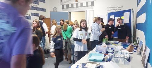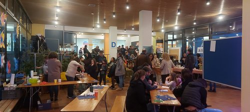 Am Neuaufnahmeabend wurde auch deutlich, dass die Ottilianer*innen Ihrer Schule eng verbunden sind. Egal ob man die römischen Legionäre oder die Laborassistentinnen der Chemie fragte, niemand ließ ein schlechtes Wort über das Rhabanus Maurus Gymnasium verlauten. Viele Eltern, mit denen die Redaktion gesprochen hatte, gaben an, noch in keiner anderen Schule an einem Informationsabend so viele Vertreter der Schülerschaft gesehen zu haben. Aber auch die Lehrkräfte ließen sich nicht lumpen und sorgten mit sichtbarer Präsenz und Begeisterung für die richtige Portion Ottilianer Glanz. Neben den verschiedenen Unterrichtsfächern, die sich den Viertklässler*innen aus nah und fern präsentierten, waren auch viele Wahlkurse dabei. Ob SMV Technik, Robotics oder Webteam: Wir zeigten, dass wir als Schule auch neben dem Unterricht zahlreiche Möglichkeiten haben, uns weiterzubilden. Apropos Möglichkeiten: Natürlich war auch unsere Schulsternwarte ein beliebtes Thema. Gegen Ende des Abends durfte das Heiligtum der Astronomen sogar besichtigt werden. Den ganzen Abend offen war unser Schwimmbad, das neben der Sporthalle und dem Kraftraum die sportlichen Aktivitäten am RMG präsentierte zwischen lateinischen Rüstungen, physikalischen Blitzkugeln und mathematischen Oktaedern konnte so manche Familie schon einmal den Überblick verlieren. Wo waren wir schon? Bei welchem Spiel hängt mein Kind schon wieder fest? Beständige Anlaufstelle war jedoch das Buffet im Griechischraum, da auch von Schüler*innen eifrig geplündert wurde.