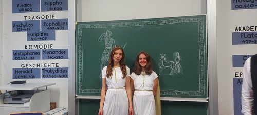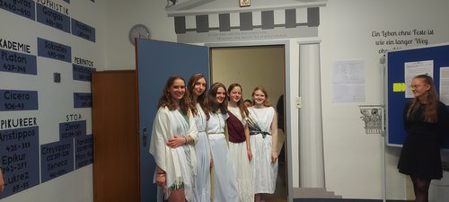 „Entschuldigung, kann ich Ihnen helfen?“ Wollen Sie nicht vielleicht zur Zauberlehrlingaufführung kommen?“ „ Und, wie gefällt Dir die Schule?“ die berühmte und viele gerühmte Ottilianer Freundlichkeit war überall zu sehen und zu hören. Egal ob es die griechischen Götter waren, die durchs Haus streunten, und per göttlicher Eingebung immer gerade dort waren, wo Sie gebraucht wurden. Oder ob es die Schüler*innen waren, die eigentlich gar keine Aufgabe hatten, sich aber trotzdem im Schulhaus aufhielten.